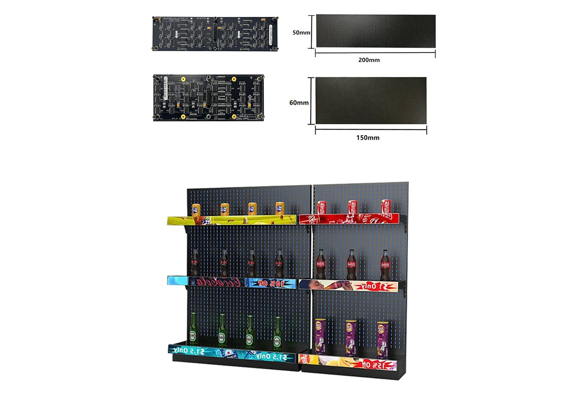 LED shelf screen used in supermarkets, indoor advertising promotion. Can achieve fast installation, left and right fast patchscreen; Single module light weight, display consistency is perfect; Low gray highlight, more delicate picture