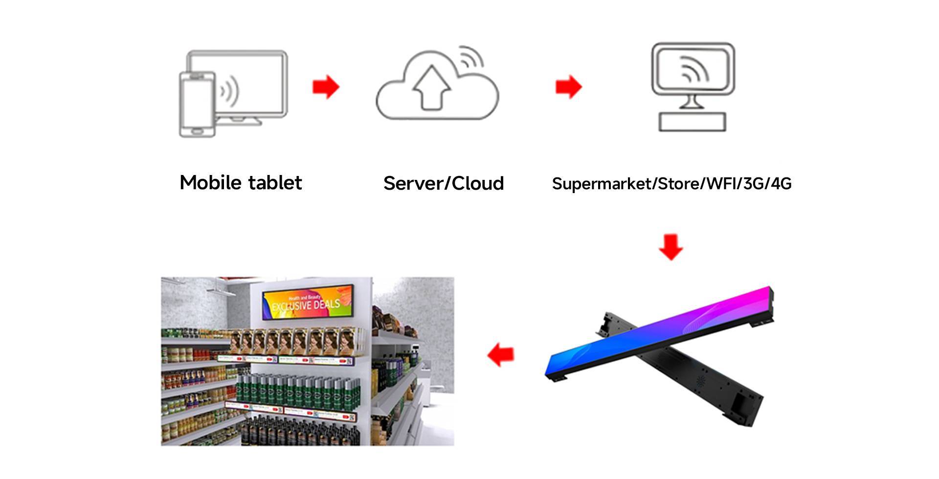• Application field:Supermarket or mall shelves, showroom displays, billboards